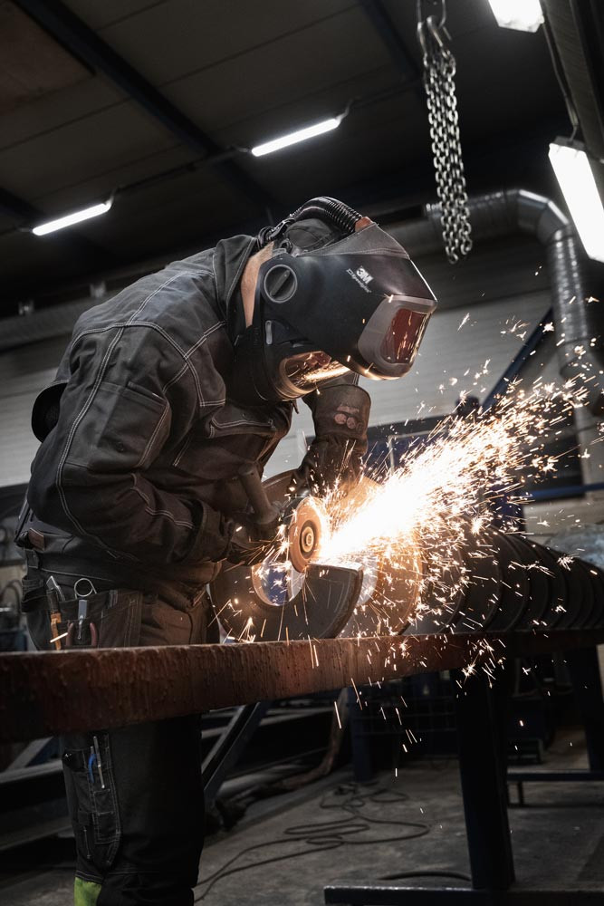 Anwendung: Zum Hochleistungs-Schweißen im hohen Ampère-Bereich und durch hochklappbare Maske auch zum Schleifen geeignet.