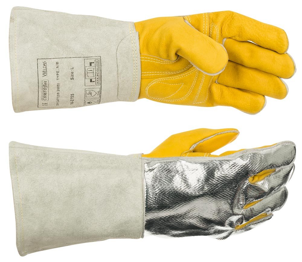 Ausführung: Gefahren-Kategorie II - Schutz bei mittleren Risiken ∙ Nach EN 12477 (2001 + A1:2005) Type A, TÜV BP 60152707 0001 und TÜV 60403152 003 ∙ Multischichthandschuh - Handinnenfläche aus Rind-Spaltleder, Handaußenseite aus Rind-Vollleder sowie zusätzlicher aluminisierter Rückseite aus PFR-Kunstseide zur Reflektion der Strahlungshitze (bis zu 95%) ∙ Mit Hirsch-Spaltleder und COMFOflex® gefüttertem Handrücken für perfekten Polstereffekt und Schweißabsorbierung ∙ Alle Nähte mit 4-fach und 5-fach DuPont KEVLAR®-Garn verarbeitet ∙ Öl- und wetterbeständig