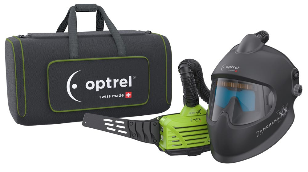 Schweißerschutz im Komplettset ∙ Schweißerschutzhelm panoramaxx clt mit Frischluftgebläse e3000X inklusive 18h Akku, Ladegerät, Bedienungsanleitung und Transporttasche