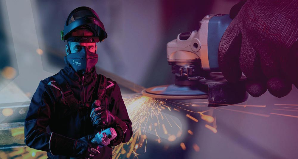 Schutzstufe TH3 (EN12941) · Gebläseatemschutzgerät mit integriertem Luftfluss-Sensor und 3-stufig regulierbarem Luftstrom