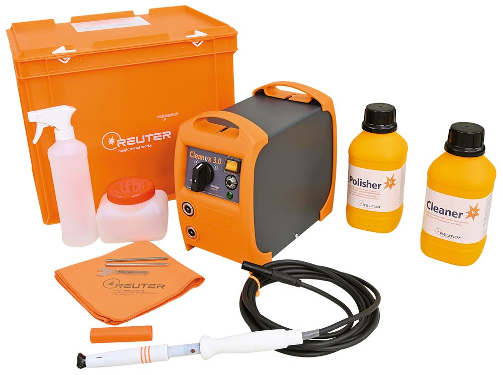 Ausführung: Die Cleanox-Gerätefamilie aus Kunststoff und Aluminium machen die drei Geräte überraschend leicht und extrem robust ∙ Dabei gehören sie zu den leistungsstärksten im Markt: 80 A Dauerstrom bei 100 % Einschaltdauer, dazu Impulsströme über 200 A – diese Werte setzen Maßstäbe ∙ Zum direkten Start werden Cleanox-Geräte als Gerätesets verkauft