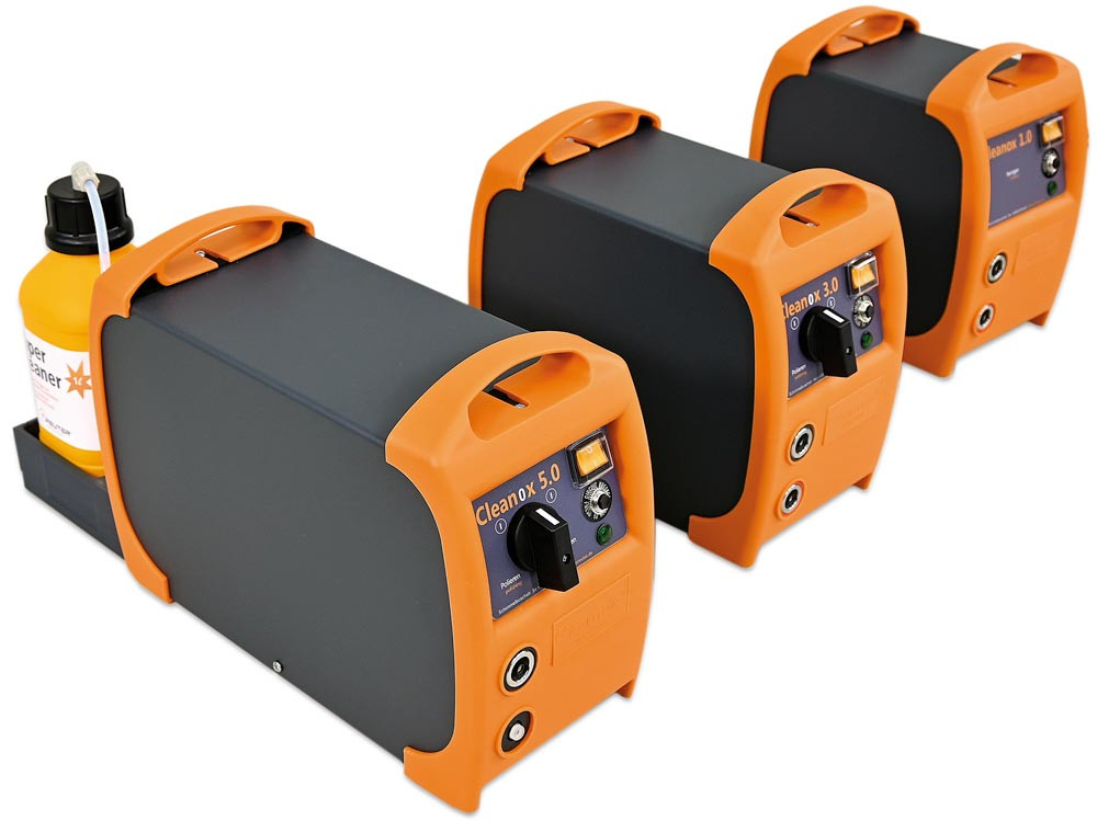 Ausführung: Die Cleanox-Gerätefamilie aus Kunststoff und Aluminium machen die drei Geräte überraschend leicht und extrem robust ∙ Dabei gehören sie zu den leistungsstärksten im Markt: 80 A Dauerstrom bei 100 % Einschaltdauer, dazu Impulsströme über 200 A – diese Werte setzen Maßstäbe ∙ Zum direkten Start werden Cleanox-Geräte als Gerätesets verkauft