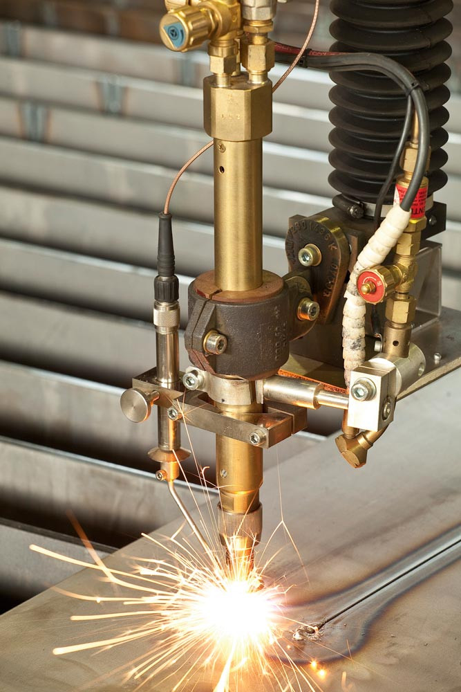 Ausführung: Wartungsfreier Dreischlauch-Maschinen-Schneidbrenner für zylindrische Düsen ∙ Mit patentiertem Düsen-Schnellwechselsystem ohne Werkzeug ∙ Einspann-Ø 32 mm ∙ Schneidbereich bis 300 mm ∙ Höhere Schneidgeschwindigkeit und längere Düsen-Standzeiten gegenüber herkömmlichen Standard-Düsen bei guter Schnittqualität gemäß der Güteklasse EN ISO 9013 ∙ Keine Oberkanten-Anschmelzungen und Schlackenperlenbildung durch besondere Heizschlitzanordnung ∙ Einheitliche Düsen-Heizkappen für alle Gasarten