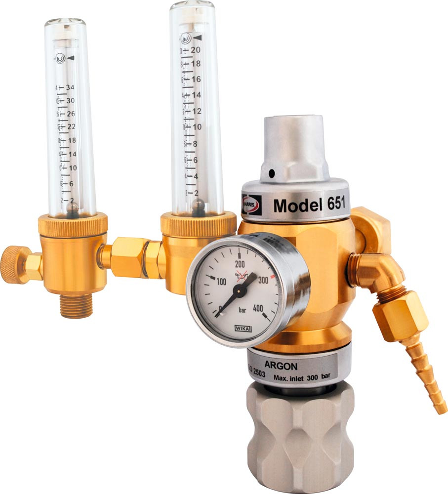 Druckminderer Modell 651 mit Gassparvorrichtung und Doppelflowmeter 2x 0-34L, 230 bar