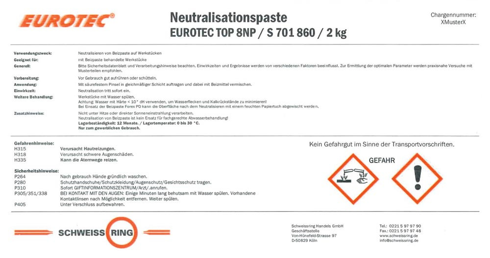 EUROTEC TOP 8NP - Neutralisationspaste, 2 kg