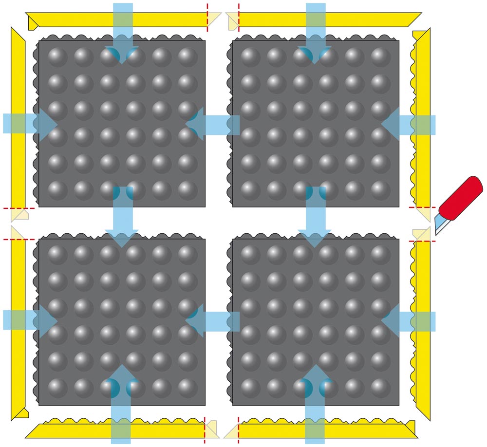 Eckverbindung für Arbeitsplatz-Fliese mit Verbindungsnoppen, Farbe gelb, LxB 910x60 mm S912516
