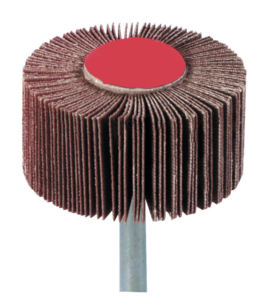 Ausführung: Nach DIN 69183 ∙ Schaft-Ø 6 mm ∙ Die Lamellen sind fächerförmig, radial um die Achse des Werkzeuges angeordnet, dadurch optimale Anpassung an die Konturen des zu bearbeitenden Werkstückes - alle Erhöhungen und Vertiefungen werden gleichzeitig erfasst ∙ Kornart Korund, das Schleifkorn ist in die Kunstharzbeschichtung der zugfesten Gewebelamellen eingebettet