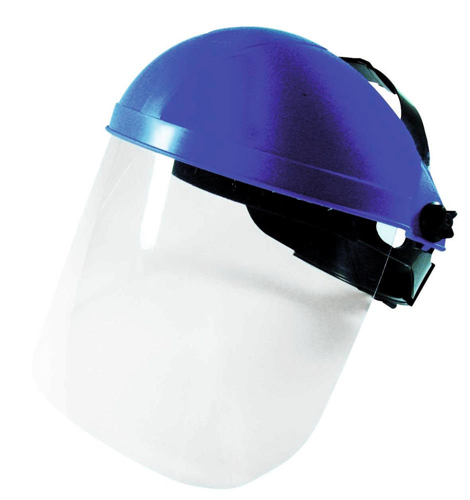 Geischtsschutzschirm mit zusätzlichem Stirnschutz ∙ Sicherer Halt durch individuell verstellbare Kopfhalterung ∙ Polycarbonatscheibe ∙ 350 x 205 mm