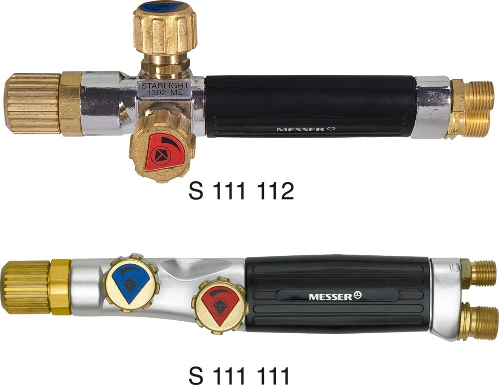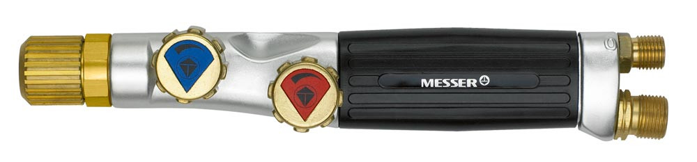 Ausführung: Ergonomische, robuste Handgriffe in Vollaluminium ∙ Austauschbare Schlauchanschlüsse für Schläuche - Sauerstoff G 1/4" x 6 mm und Brenngas G 3/8" LH x 9 mm ∙ Austauschbare Monoblockventile für Dauerbeanspruchung