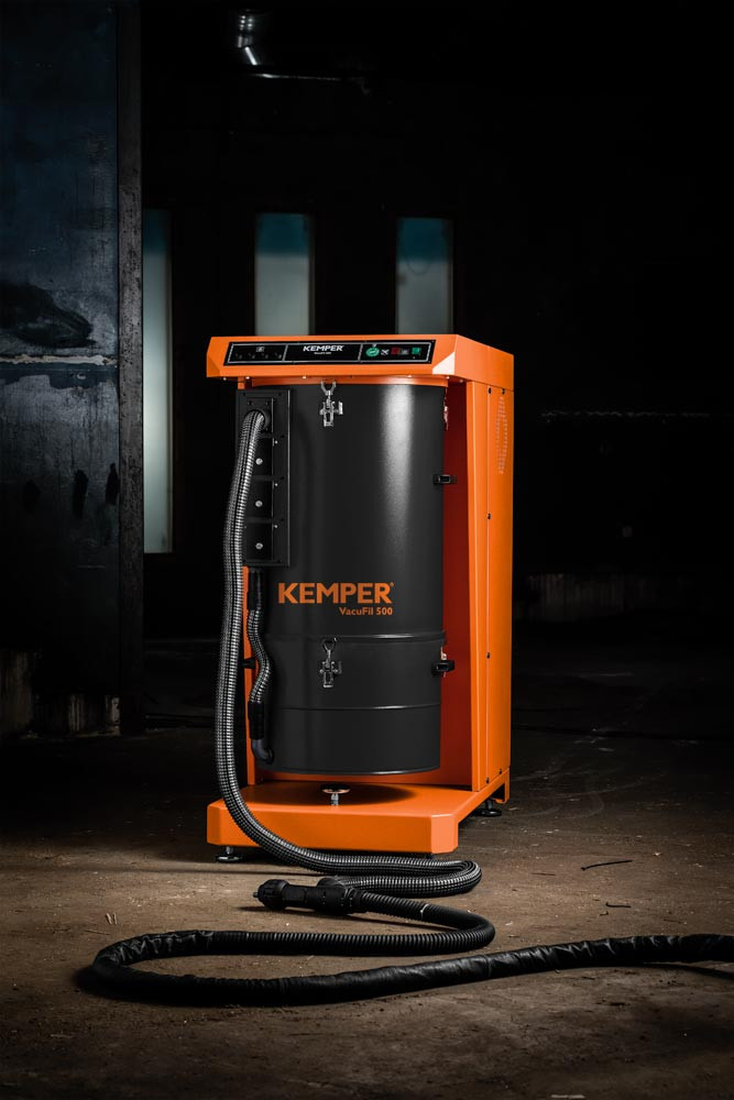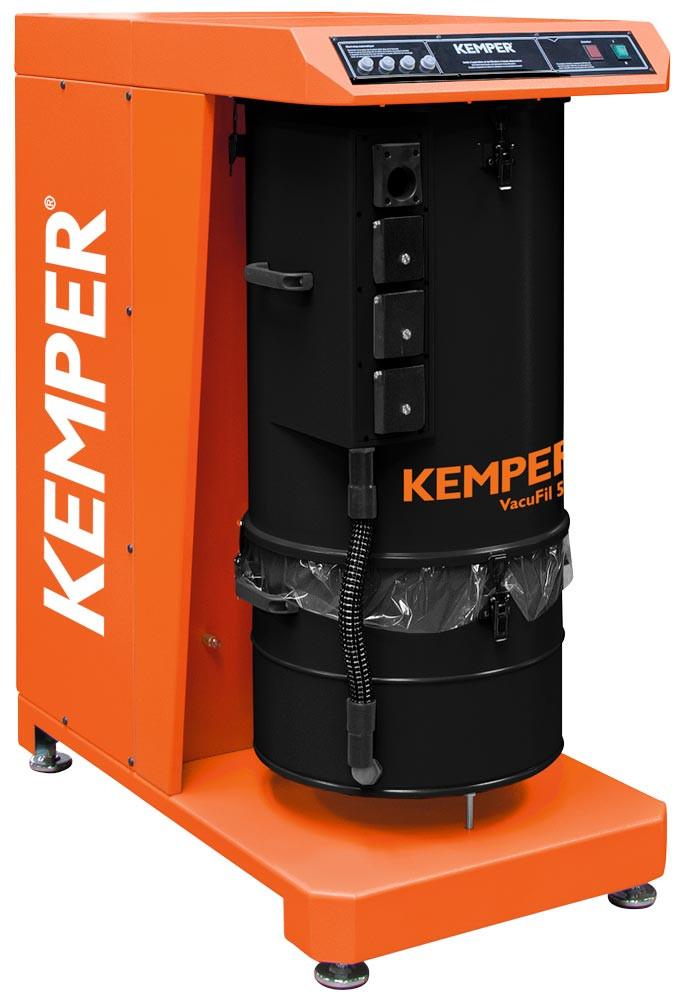 Ausführung: Hochvakuum-Absauganlage "VacuFil 500" mit bis zu vier Anschlussmöglichkeiten (Ø 45 mm) für das flexible Absaugen von schadstoffhaltiger Luft direkt an der Entstehungsstelle ∙ Für den dauerhaften Einsatz ∙ Mit Seitenkanalverdichter ∙ KemTex® ePTFE Membran-Filterpatrone ∙ Abscheidegrad > 99,99% (Filterklasse M) ∙ Automatische Abreinigung, differenzdruckgesteuert ∙ Automatische Volumenstromanpassung ∙ 40 L Staubsammelbehälter · Die Blende für sowohl einen Stutzen (Rohrleitung) als auch für 4 Stutzen (für den Direktanschluss absaugfähiger Schweißbrenner) sind im Lieferumfang enthalten