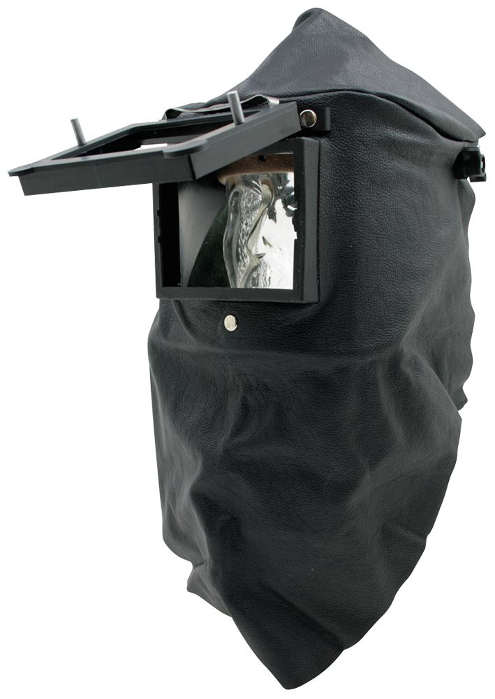 Ausführung: Lederhauben nach EN 175 ∙ Leichte Kopfhaube aus weichem, schwarzen Leder ∙ Rückseite wahlweise offen oder geschlossen ∙ Mit stufenlos verstellbarem Kopfband und hochklappbarem Rahmen ∙ Lieferung ohne Gläser