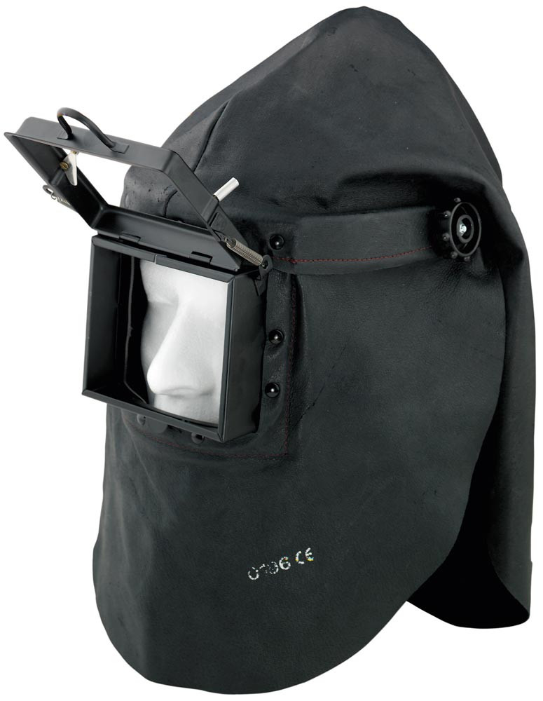 Ausführung: Lederhauben nach EN 175 ∙ Leichte Kopfhaube aus weichem, schwarzen Leder ∙ Rückseite wahlweise offen oder geschlossen ∙ Mit stufenlos verstellbarem Kopfband und hochklappbarem Metallrahmen ∙ Lieferung ohne Gläser