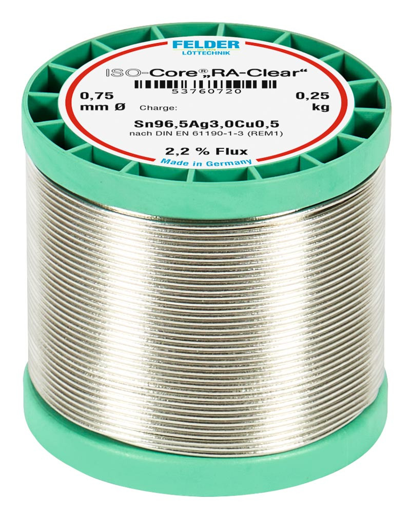 Lötdraht ISO-Core RA-Clear, Sn96, 5AG3Cu0,5 - bleifrei, Durchmesser 0,75 mm, Spulengröße 250 g