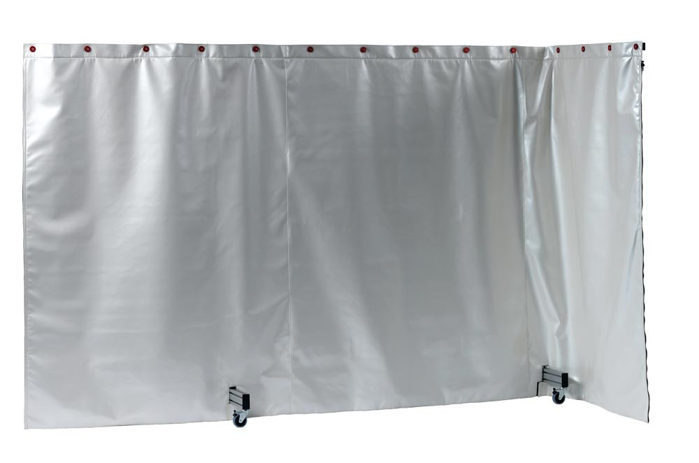 Ausführung: Mobiles klappbares Schwenkarmgestell mit Schnellverschlüssen ∙ Auf Rollen mit schwenkbaren Auslegern ∙ Klappbar - für den einfachen Transport mit z.B. PKW ∙ Werkzeuglos aufbaubar ∙ Vorhänge mehrerer Schwenkarmgestelle mittels Reißverschuss verbindbar