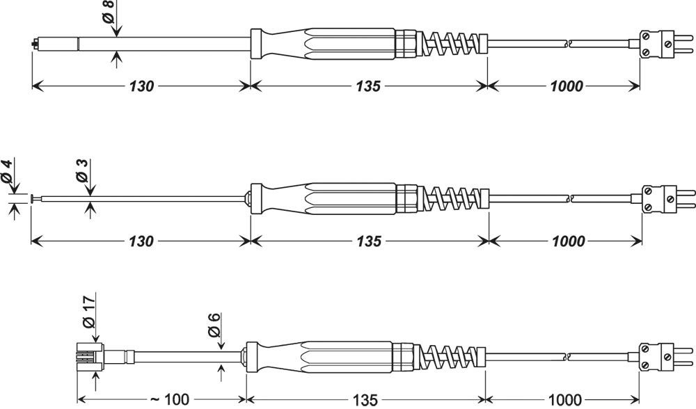 Ausführung: Oberflächenfühler mit Handgriff, 1,0 m Silikonkabel und Mini-Thermoelement-Stecker