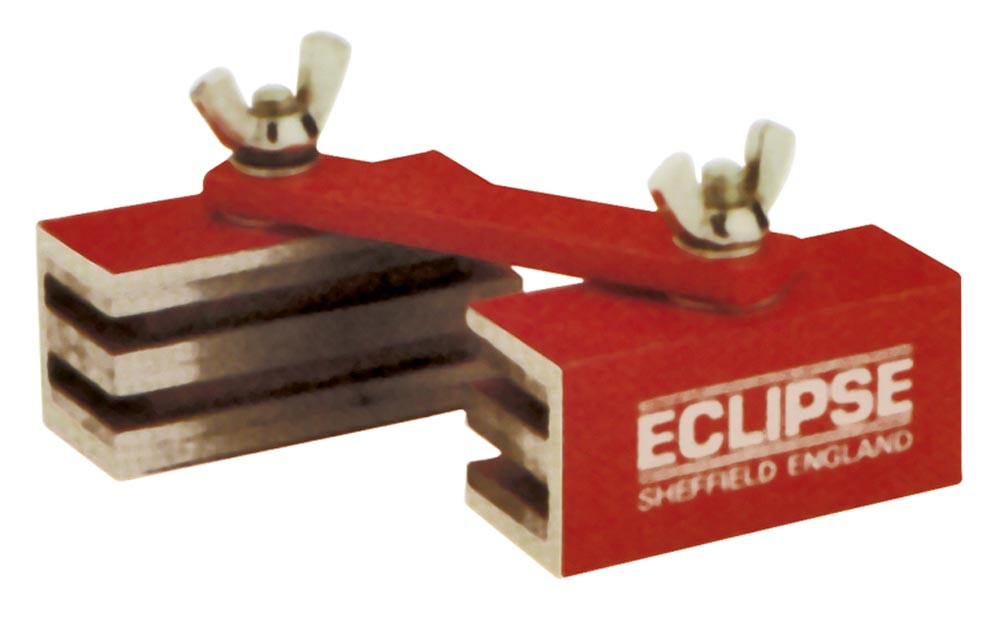 Ausführung: Max. Einsatztemperatur 150 °C ∙ Zwei einzelne Magnetblöcke mittels Gelenk verbunden ∙ In jeden Winkel klemmbar ∙ Eine magnetische Fläche pro Block