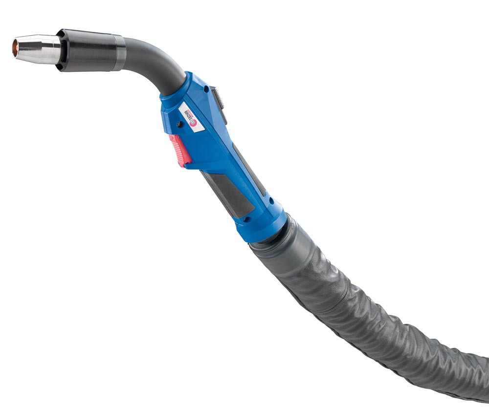 Ausführung: Absaugbrenner für hocheffiziente Schweißrauchabsaugung, wahlweise in luft- oder flüssiggekühlter Ausführung ∙ Verbesserte Ergonomie und merkliche Gewichtsreduktion ∙ Schlankes Frontend ∙ Mit optimierter Schutzgasabdeckung und verbessertem ergonomischen Handgriff ∙ Einzigartige Balance von Brennerhals zu Schlauchpaket ∙ Bei Punktabsaugung werden, abhängig von der Brennerposition, zwischen 90 % und 99 % der schädlichen Partikel aufgenommen und herausgefiltert