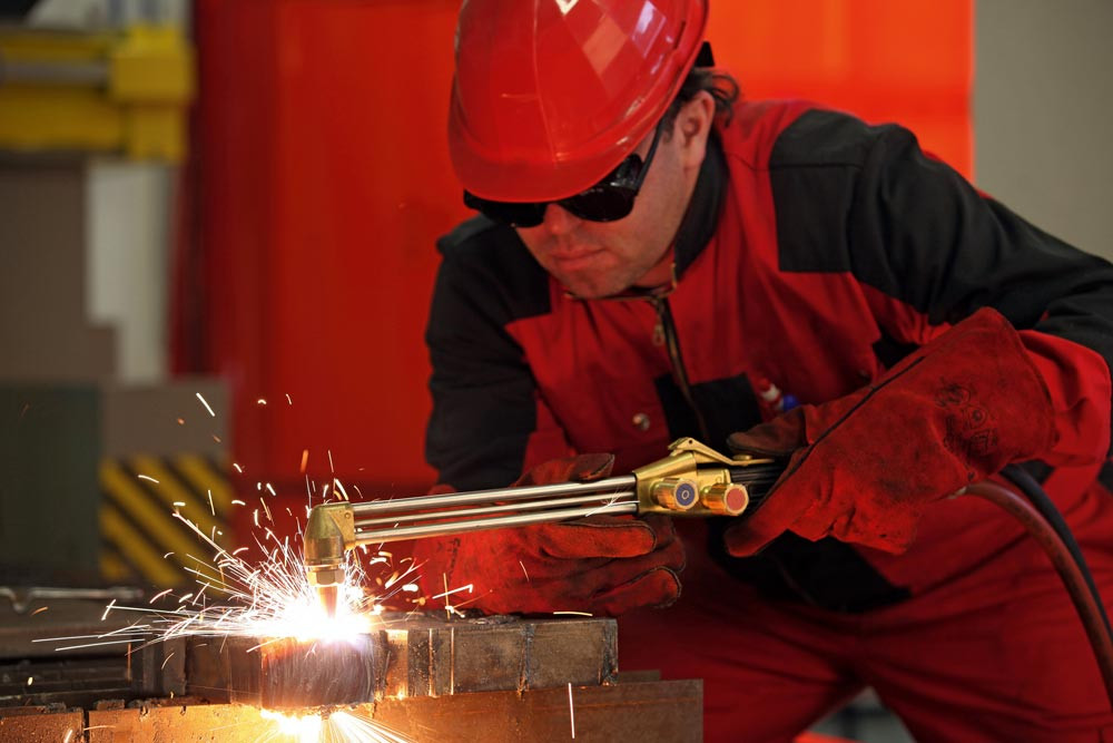 Ausführung: Massive Bauart, Brennerkopf aus Messing ∙ Hohe Stabilität durch Edelstahlrohre im Dreieckverbund, Ventilkörper aus Messing, resistent gegen Umwelteinflüsse ∙ Leicht bedienbare MONOBLOC® Einstellventile mit Stellsymbolen ∙ Besonders gut dosierbares Schneidsauerstoffventil in Federhebel ∙ Griffschalen aus Metall, kunststoffbeschichtet, ergonomisch gestaltet, griffig, beste Handhabung ∙ Schneidbereich 3-500 mm nach DIN/EN/ISO 5172 ∙ Wahlweise mit 90°, 75°, 0°-Brennerkopf für gasemischende Düsen ∙ Anschlüsse G 1/4" - DN6 für Sauerstoff und G 3/8" LH - DN8 für Brenngas