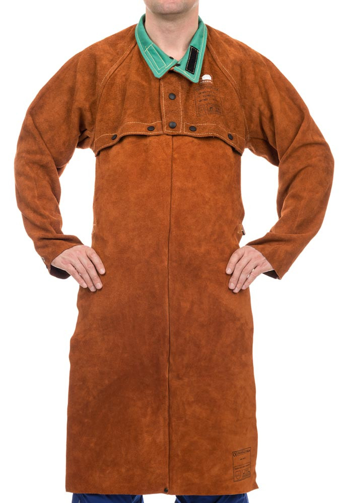 Zertifiziert nach EN ISO 11611:2015, Klasse 2 A1+A2, TÜV BP 60126846 0001 und TÜV 21285003 001 ∙ Rindspaltleder aus der Seite, A-Qualität ∙ Lederdicke minimum 1 mm ∙ Ledernähte mit Doppelkettenstich aus extrem hitzebeständigem 5-fachen KEVLAR®-Garn vernäht