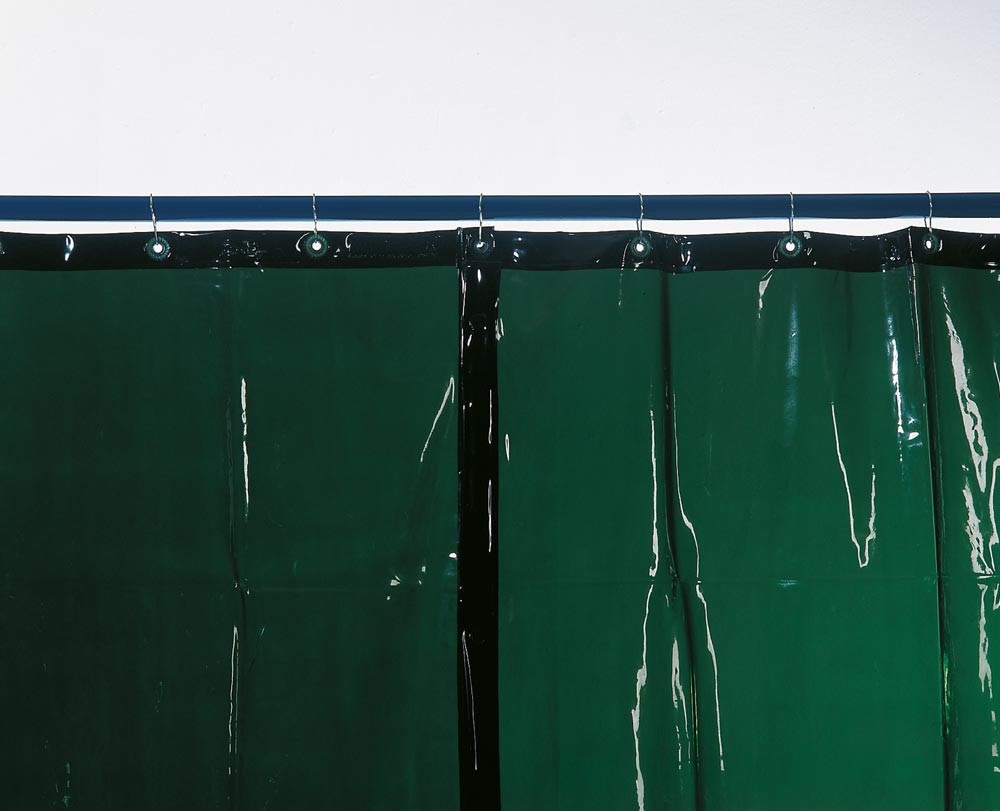 Anwendung: Zur Abtrennung einzelner Arbeits- und Hallenbereiche ∙ Schutz vor gefährlicher Strahlung, Schweißlichtbögen und Spritzern ∙ Sichtschutz und Verdunkelung ∙ Glasklare Ausführung nur zum Schutz gegen Staub, Zugluft, Nässe und Schleifspritzer
