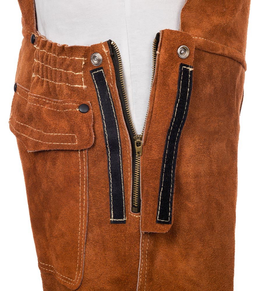 Zertifiziert nach EN ISO 11611:2015, Klasse 2 A1+A2, TÜV BP 60126846 0001 und TÜV 21285003 001 ∙ Aus langlebigem und geschmeidigem Spalt-Rindleder (aus der Seite hergestellt) ∙ Hitze- und feuerbeständig ∙ Ledernähte mit Doppelkettenstich aus extrem hitzebeständigem 5-fachem KEVLAR®-Garn vernäht ∙ Alle Spannungspunkte genietet oder mit doppeltem Leder verstärkt ∙ Alle Druckknöpfe zur Sicherheit stromisoliert ∙ Farbe Lava Brown™