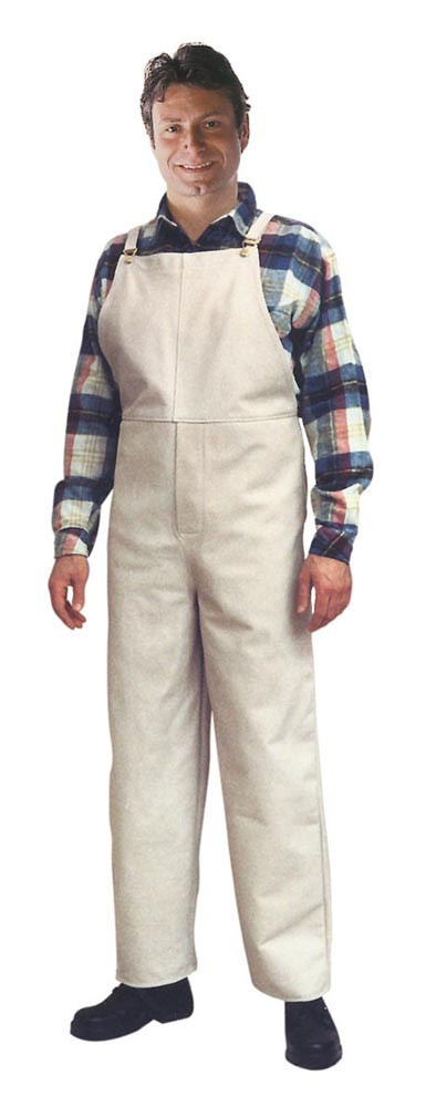 Aus Chromnarbenleder mit Brustlatz ∙ Nach EN ISO 11611 Klasse 2, A1 ∙ Verdeckte Druckknöpfe beim Hosenschlitz ∙ 1 Seitenelektrodentasche ∙ Zum Anziehen einseitig durch Druckknöpfe zu öffnen ∙ Riemen mit kräftigen Schnallen ∙ Farbe natur