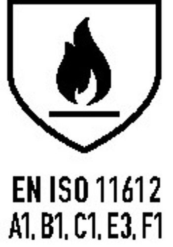 | Norm | EN ISO 11611:2015 Kl. 1 A1, EN ISO 11612:2015 A1, B1, C1, E3, F1 EN 1149-5:2018 |