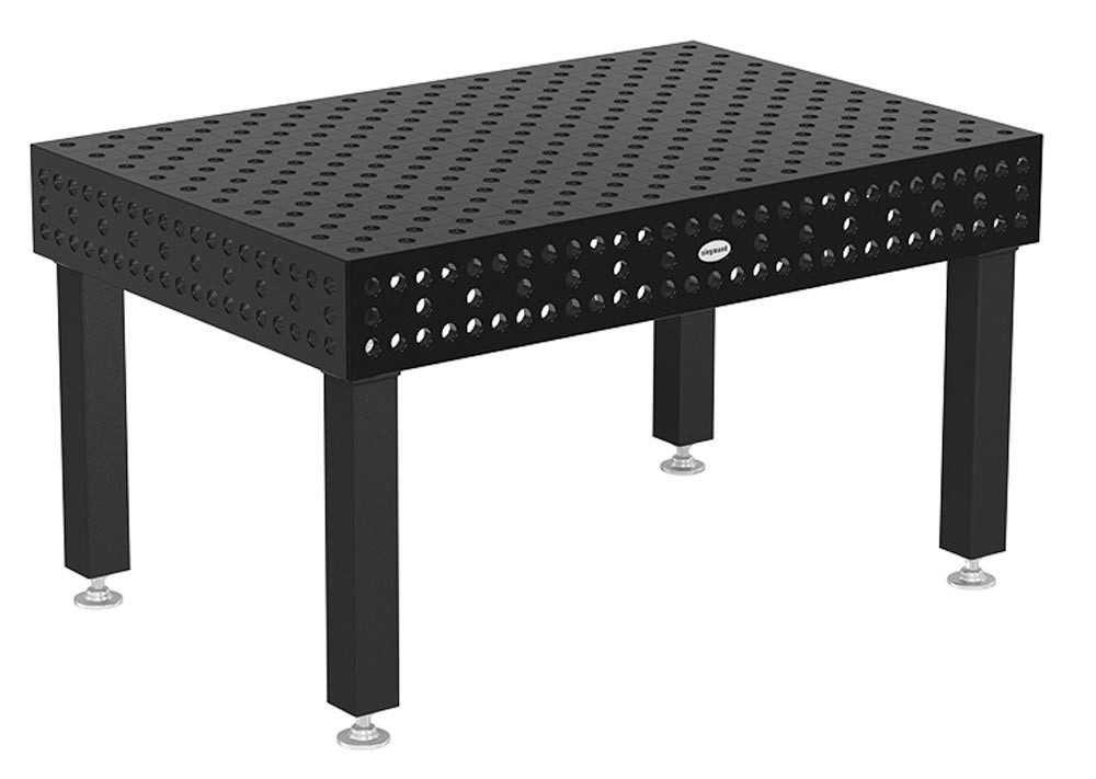 Ausführung: Durchgehärteter Werkzeugstahl X8.7 + Plasmanitrierung, Seitenwange aus hochwertigem Stahl S355J2+N + Plasmanitrierung ∙ Materialstärke ca. 24,5 – 27 mm ∙ Bohrung Ø 28 mm ∙ Bohrungen Oberfläche im Diagonalraster ∙ Ecken, Kanten und Bohrungen abgerundet ∙ Höhe Seitenwange 200 mm ∙ Bohrungen Seitenwange im Diagonalraster ∙ Inklusive Skalierung auf der Oberfläche ∙ Konstruktion durch Rippen verstärkt ∙ Rasterlinien ermöglichen präzise Aufbauten ∙ Fußhöhe 650 mm ∙ Weitere Tischgrößen und Ausführungen auf Anfrage