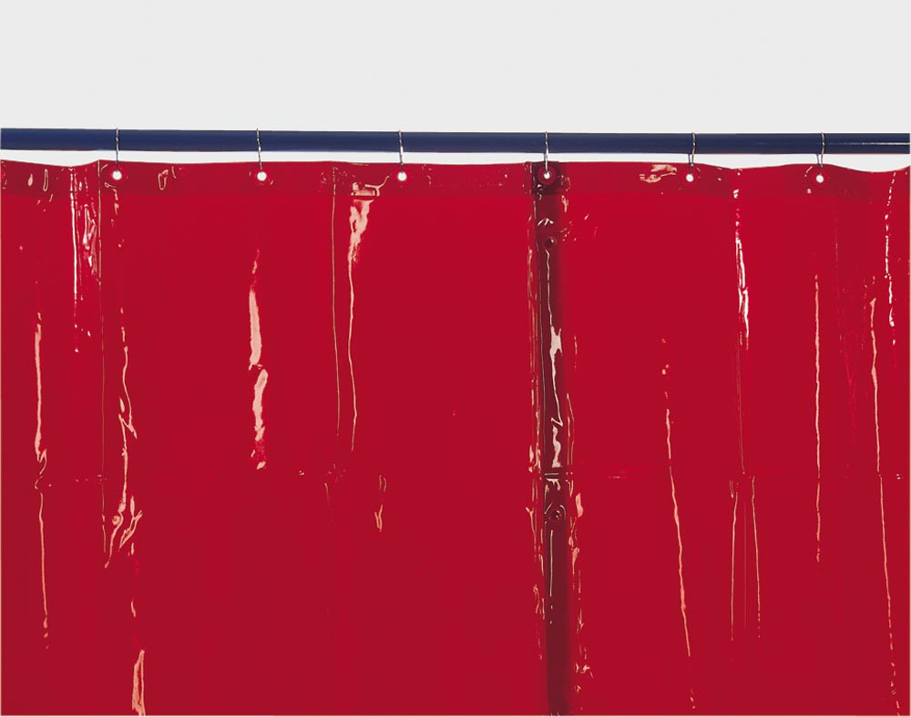 Ausführung: Schutzvorhang aus robustem, ca. 0,4 mm starken Kunststoff ∙ Funkenfest, schwer entflammbar ∙ Nach DIN EN ISO 25980 geprüft ∙ Zur Befestigung an einem Rohr oder an einem C-Profil ∙ Allseitig einreißfest gesäumt ∙ Verstärkte Ringösen zur Befestigung ∙ Eingeschweißte Kunststoffdruckknöpfe