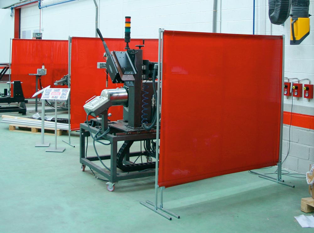 Ausführung: 1-teilige Schutzwand nach DIN EN ISO 25980 geprüft ∙ Spannvorhang mit offenem Saum oben und unten ∙ Ohne Lenkrollen ∙ Gestell verzinkt, Rundrohr Ø 25 x 1 mm ∙ Lieferung inklusive Spannvorhang