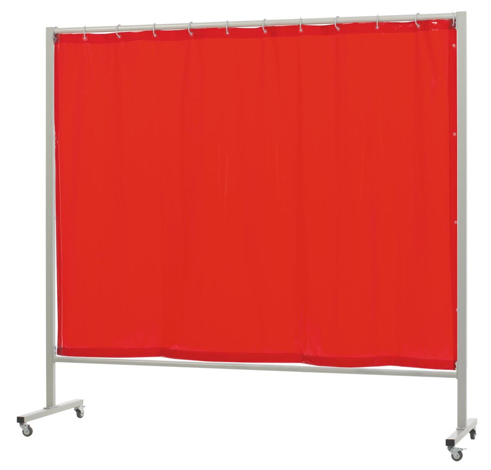 Ausführung: 1-teilige Schutzwand nach DIN EN ISO 25980 geprüft ∙ Mit 4 Standard-Lenkrollen Ø 50 mm, davon 2 Lenkrollen mit Bremse und 2 ohne ∙ Rundrohr Ø 30 x 2,5 mm, Vierkantprofil 40 x 30 x 2 mm ∙ RAL 7035, graue Pulverbeschichtung ∙ Lieferung inklusive Vorhang