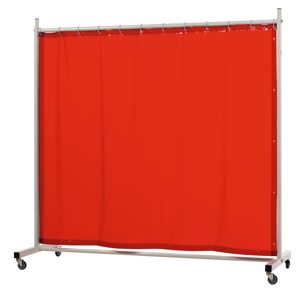 Ausführung: 1-teilige Schutzwand nach DIN EN ISO 25980 geprüft ∙ Mit 4 Standard-Lenkrollen Ø 75 mm, davon 2 Lenkrollen mit Bremse und 2 ohne ∙ Rundrohr Ø 35 x 2,5 mm, Vierkantprofil 50 x 30 x 2 mm ∙ RAL 7035, graue Pulverbeschichtung ∙ Lieferung inklusive Vorhang
