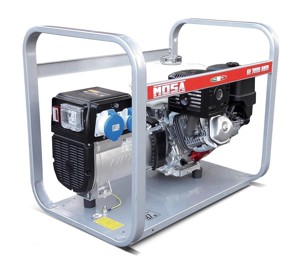 Ausführung: HONDA OHV, Benzin-Motor ∙ Mit Motorschutz (Öl) und Überlastsicherung ∙ Generator 1-phasig, synchron ∙ Reversierstart ∙ 1 Schuko-Steckdose 230V, 1 CEE-Steckdose 230V-32A ∙ Rohrrahmen, tragbar ∙ Entspricht den EU-Vorschriften ∙ Handfahrwagen optional auf Anfrage lieferbar