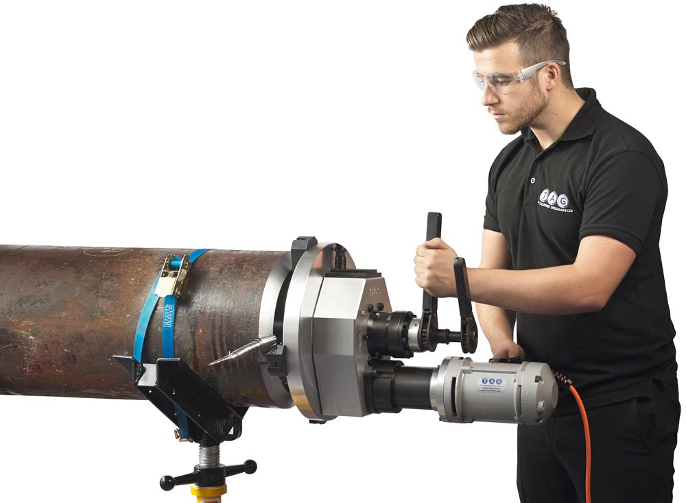 Ausführung: Tragbare, drehmomentreaktive Anfasmaschinen für den professionellen Einsatz in Handwerk und Industrie mit Arbeitsbereichen von 1/2" (PREP 2) bis 16" (PREP16) ∙ Wahlweise lieferbar in elektrischer (110V oder 220V), pneumatischer oder batteriebetriebener (nicht PREP8 + PREP 16) Ausführung
