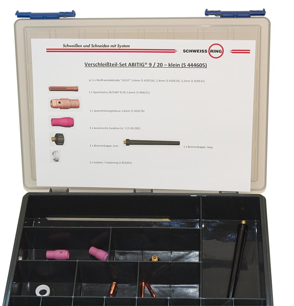 Ausführung: Erstausrüstung in stabiler Sortimentsbox für WIG-Brenner ABITIG® 9 + 20 komplett bestehend aus: