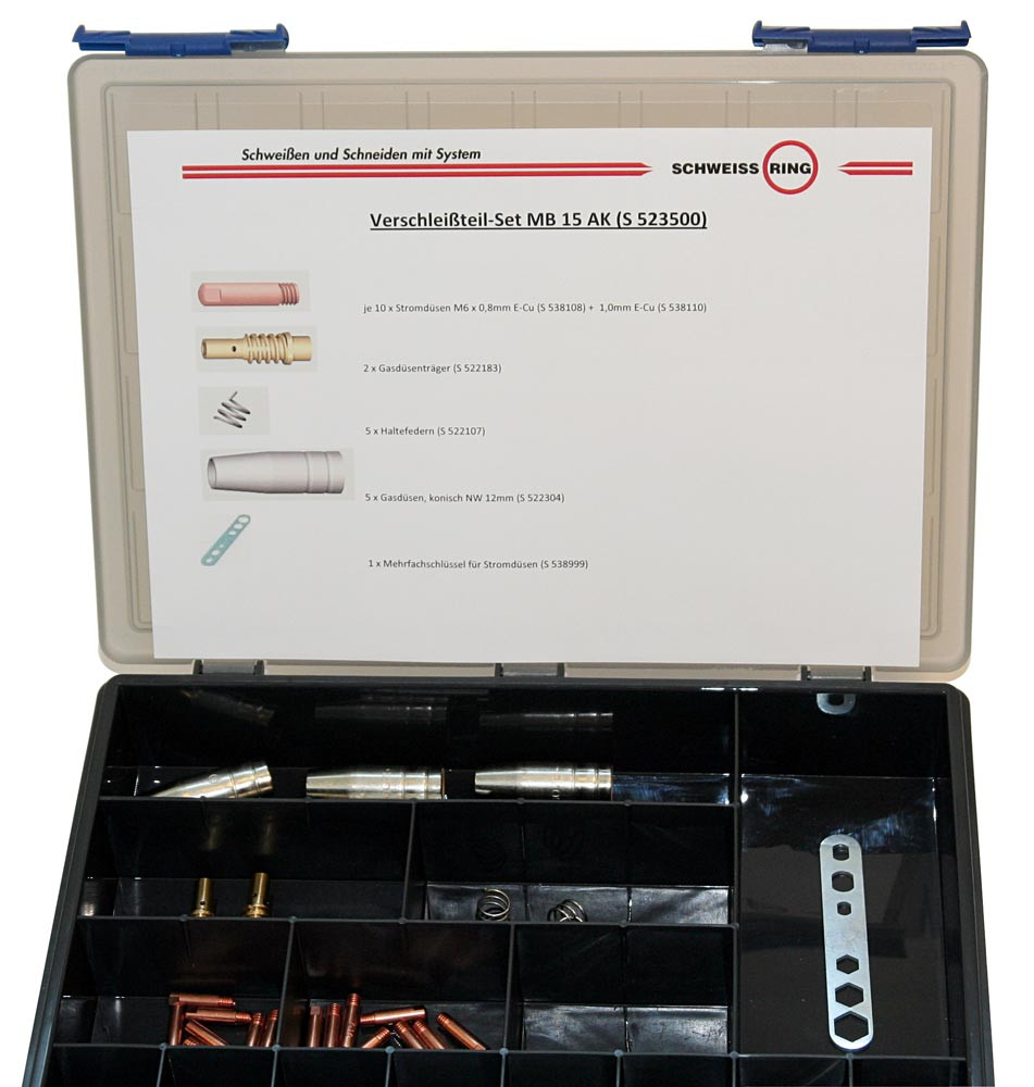 Ausführung: Erstausrüstung in stabiler Sortimentsbox für MIG/MAG-Brenner MB 15 komplett bestehend aus: