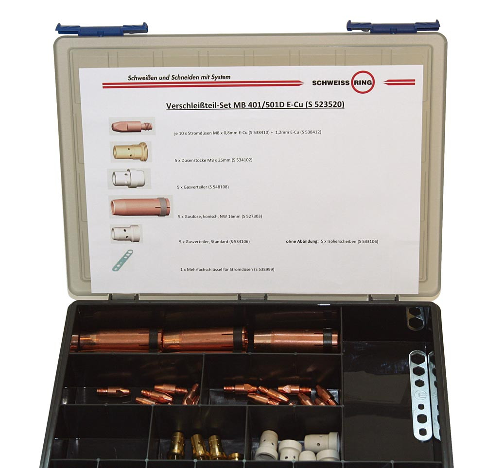 Ausführung: Erstausrüstung in stabiler Sortimentsbox für MIG/MAG-Brenner MB 401/501D komplett bestehend aus: